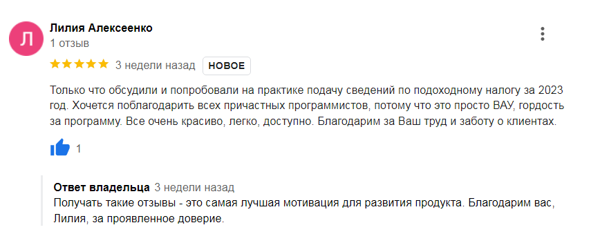Большое спасибо за такой тёплый и положительный отзыв! Мы очень рады, что наша программа стала для вас помощником в работе и что наши сотрудники, смогли оставить приятное впечатление своим профессионализмом и добросовестным отношением. Ваши слова для нас очень важны и мотивируют команду продолжать стараться и развиваться.