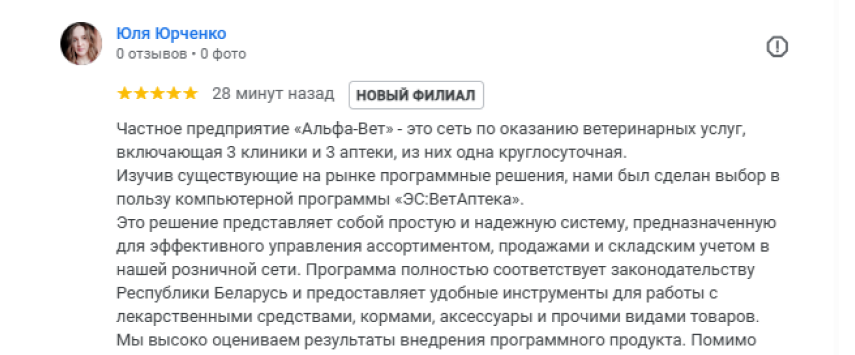 Отличная компания. Аптечная программа очень удобная в работе. Все вопросы решаются быстро. Особую благодарность хочу выразить Денису. Большое ему СПАСИБО за его профессионализм и за его человеческие качества: ТЕРПЕЛИВОСТЬ, тактичность, за поддержку и доброжелательность. Удачи и процветания Вашей компании!!!