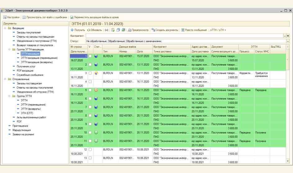 - обмен электронными накладными на маркированные товары и товары, подлежащие прослеживаемости (как с позиции отправителя, так и получателя);