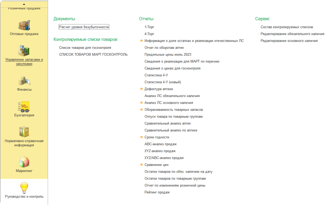 Автоматический расчет потребности в пополнении товарного запаса в аптеке с использованием оригинального алгоритма. Авто заказ на основании скорости реализации и срока оборачиваемости за предыдущий период, учитывая сезонность, всплески и снижение спроса. Контроль лекарственных средств с истекающим сроком годностиАвтоматизируйте расчёт розничных цен в 1С аптека